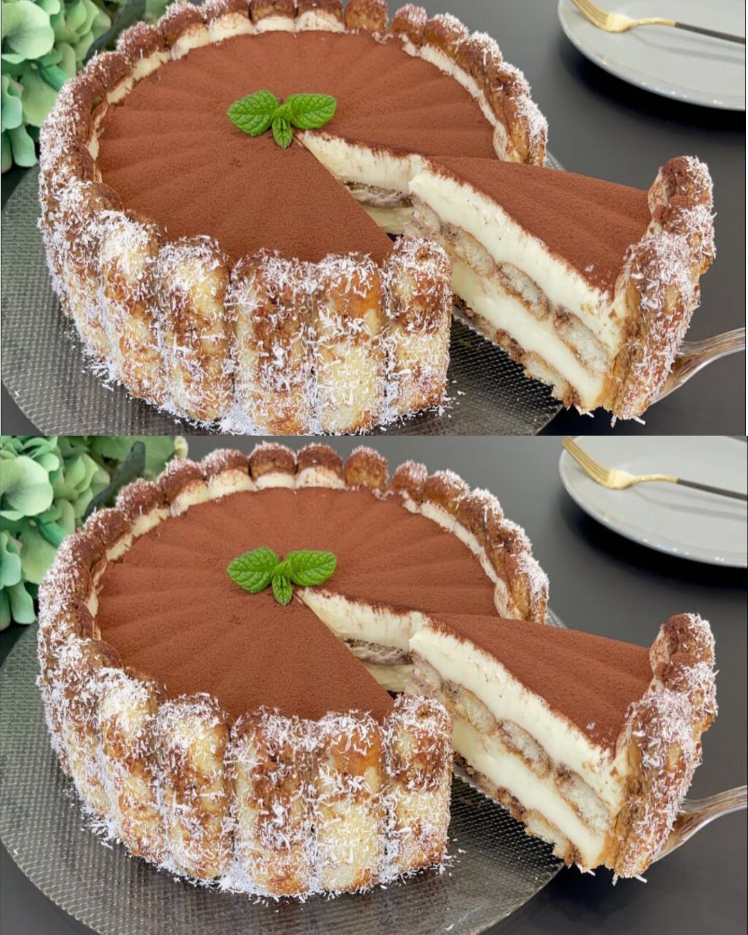 Την παραμονή της Πρωτοχρονιάς, σερβίρω τιραμισού έτσι, είναι πολύ πιο όμορφο και πιο νόστιμο: αρκετά πανετόνε και παντόρα!
